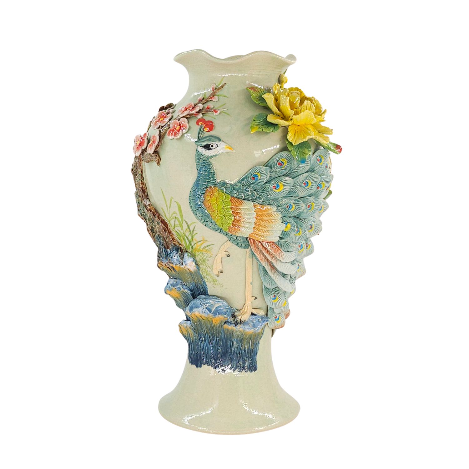 - Tên sản phẩm: Bình Hoa Bát Tràng Đắp Nổi Công Hoa Men Bóng Đặc Biệt – TV-BD125FE20-03