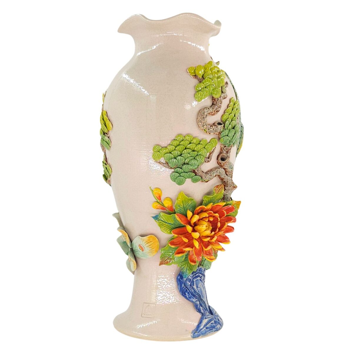 - Tên sản phẩm: Bình Hoa Bát Tràng Đắp Nổi Công Hoa Men Bóng Đặc Biệt TV-BD125FE20-24