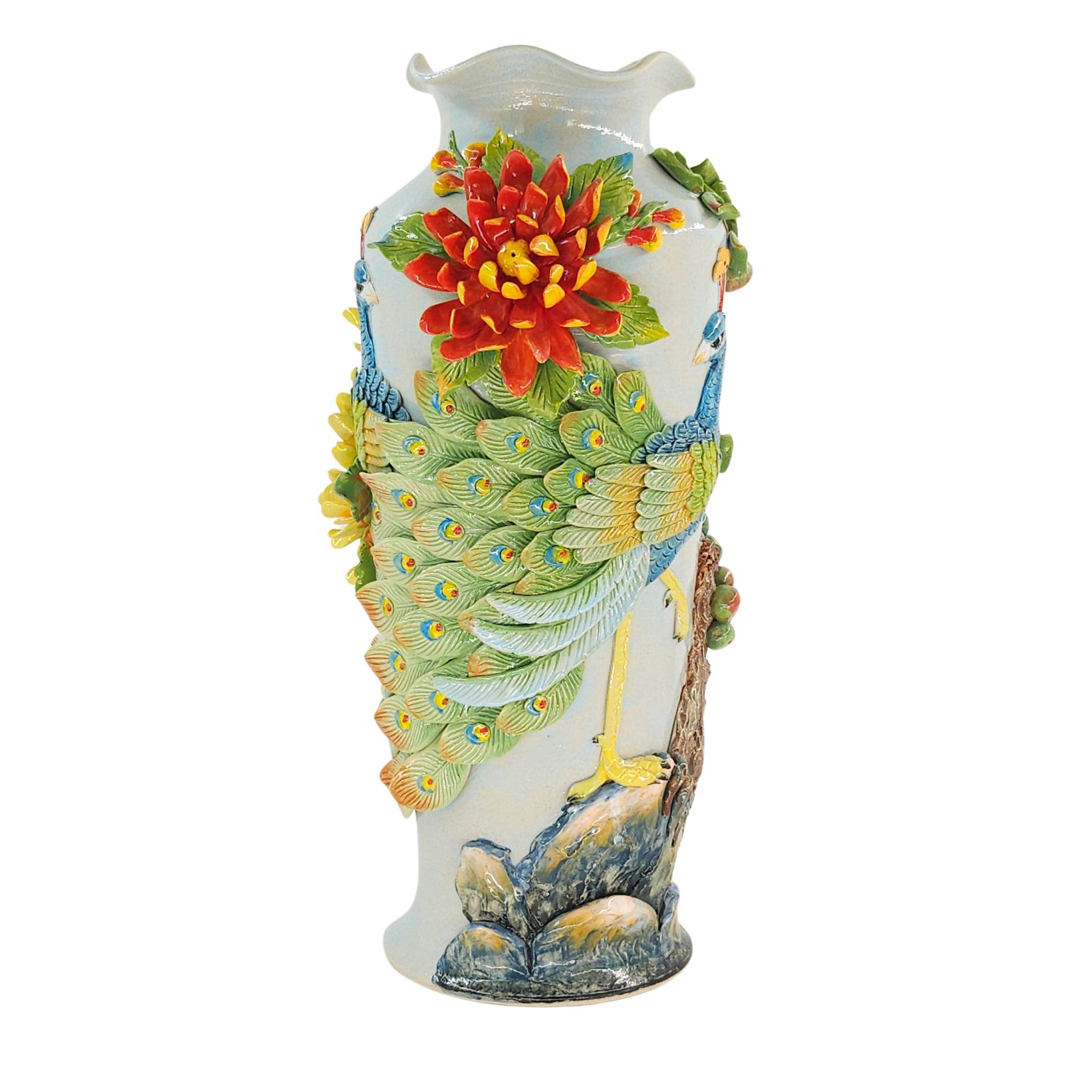 • Tên sản phẩm: Bình Hoa Bát Tràng Đắp Nổi Công Hoa Men Bóng Đặc Biệt TV-BD125FE20-26