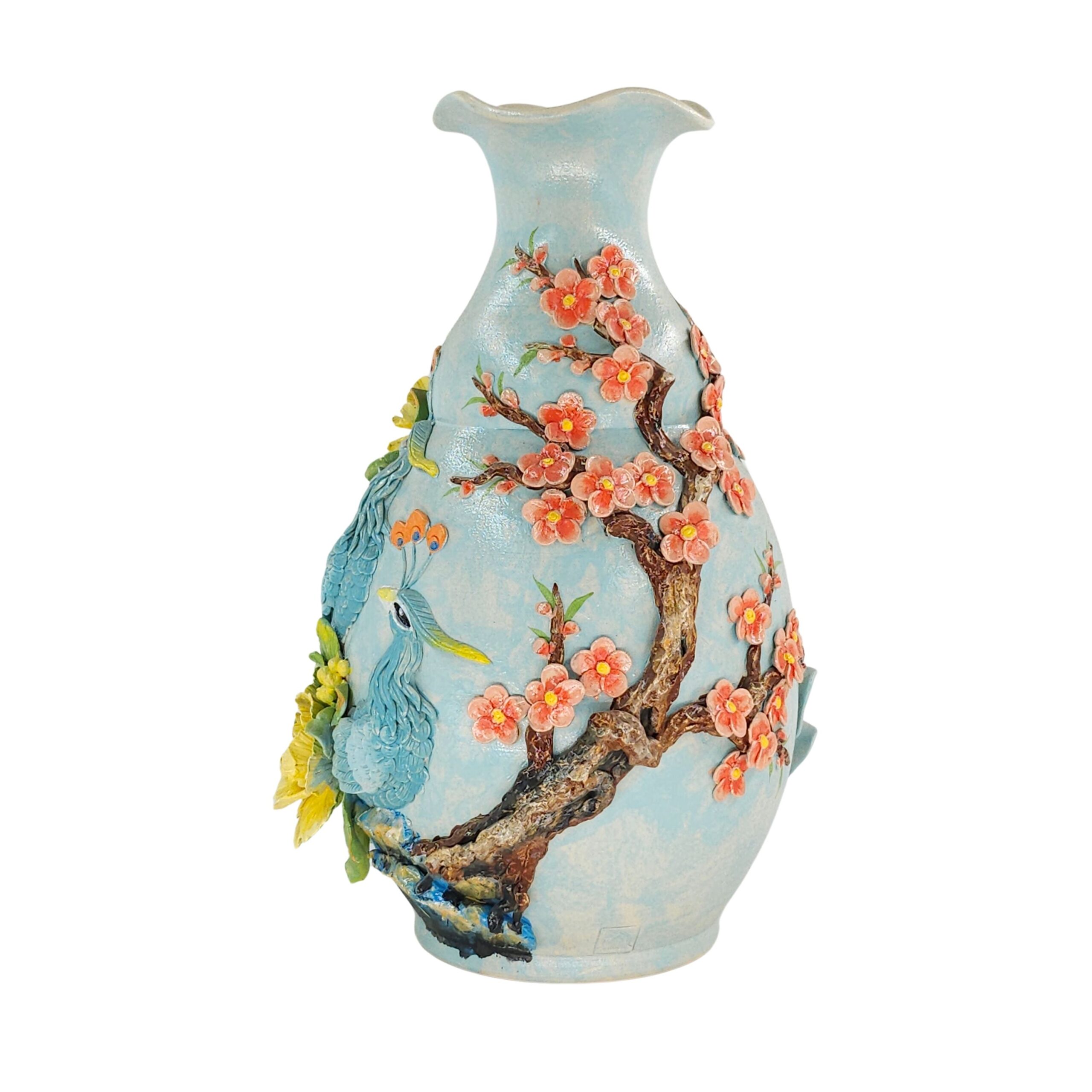 - Tên sản phẩm: Bình Hoa Bát Tràng Đắp Nổi Công Hoa Men Thô Miệng Lượn Siêu Đẹp – TV-BD124DE28-130