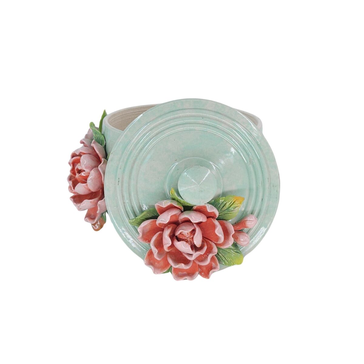 - Tên sản phẩm: Hủ Mứt Bát Tràng Đắp Nổi Hoa Mẫu Đơn Men Thô Độc Đáo – TV-BD125JA27-223